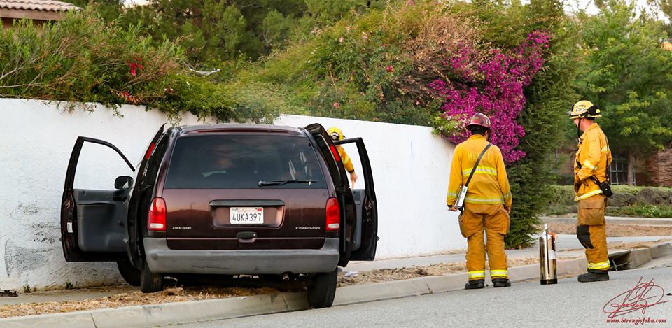May 18 2016, at approximately 7:00 PM, a vehicle crashes into a wall and busts into flames at 3964 W Thornton Ave, Hemet, CA. Witnesses of the crash stated that the van was traveling at a high rate of speed, grazed a small hill in the adjacent field, lost control and collided. Driver and any passengers were unable to be located. Upon arrival on scene, the remaining flames were being extinguished by fire department personnel.